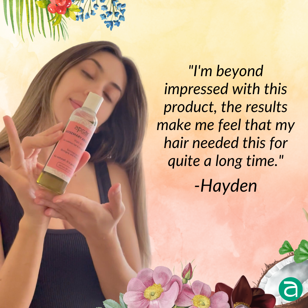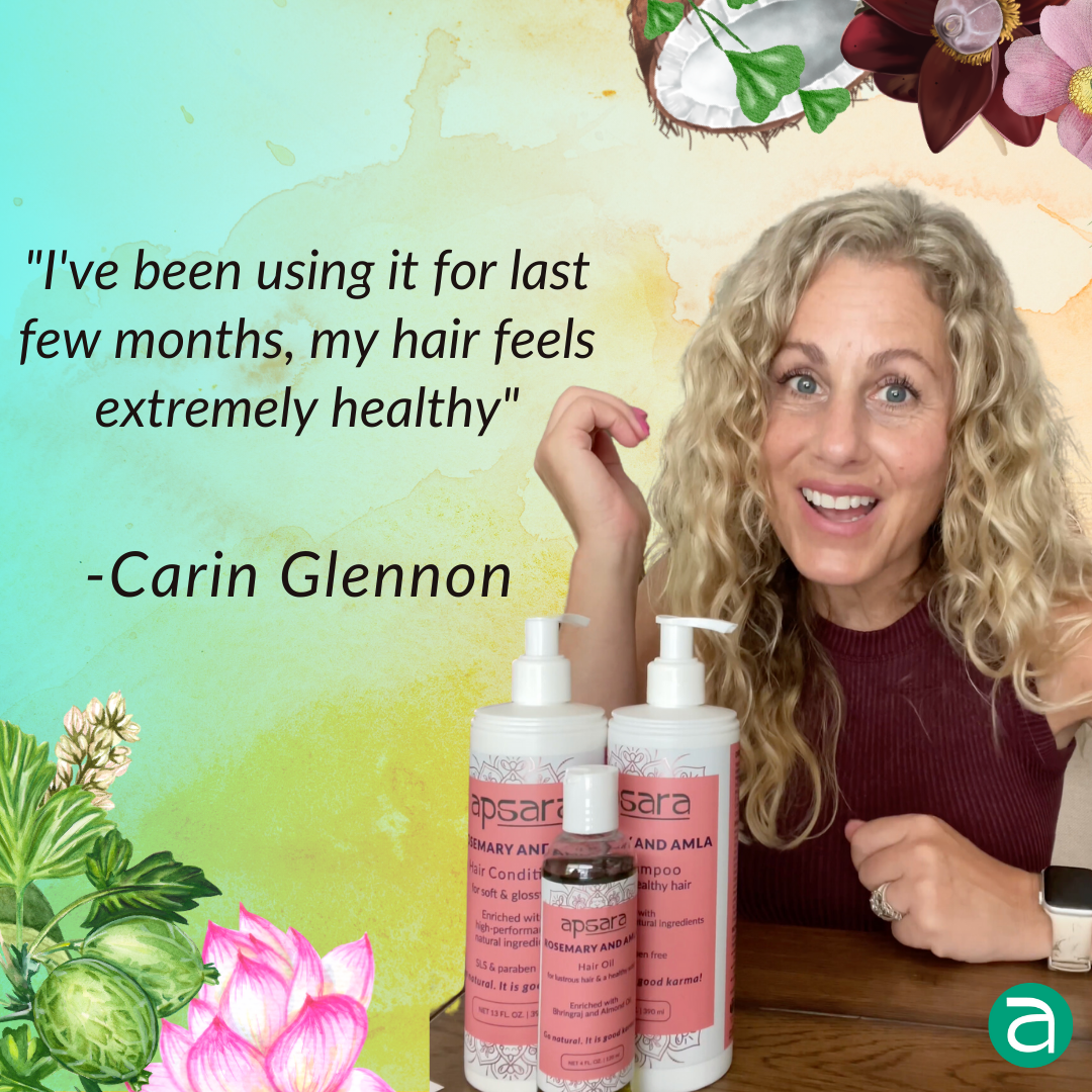 "I love Apsara haircare products! These make my hair soft and straighten out my curly hair. I love the fragrance of the oil." - Julie Thomas