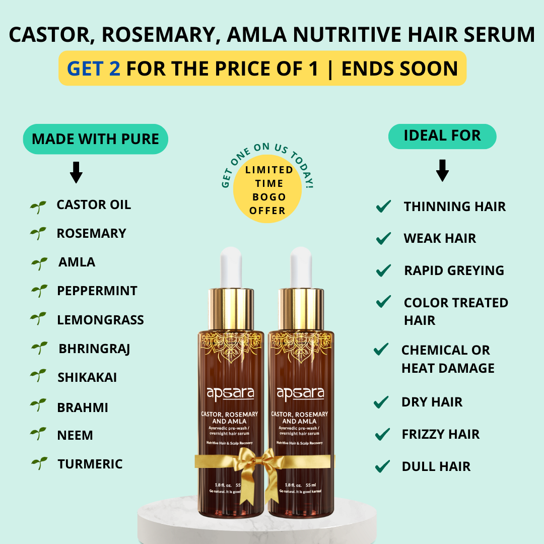 This special introductory offer is a ✔️BOGO value promotion exclusively for ✔️first-time customers on their first order. Pay for one Castor, Rosemary & Amla Nutritive Hair Serum and receive a ✔️second full-size bottle at no additional cost—giving you double the nourishment to fully experience this Ayurvedic hair ritual.