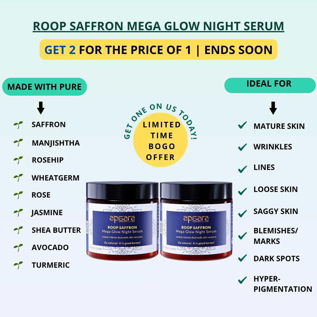 I am very happy after using the following apsara products: Rosehip and citrus nighttime facial serum, ROOP serum and Carrot seed lotion My skin feels amazing and I can already see my skin looking even and bright. Due to pigmentation my skin would appear dull most of the times and I always had dark patches, like forever sun tanned. These lovely products help me feel great. Also they are so great on skin and mind. Thanks a mil!